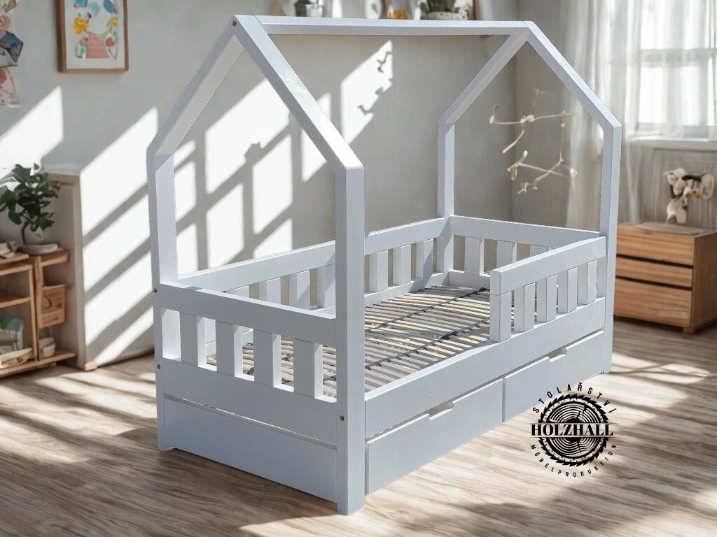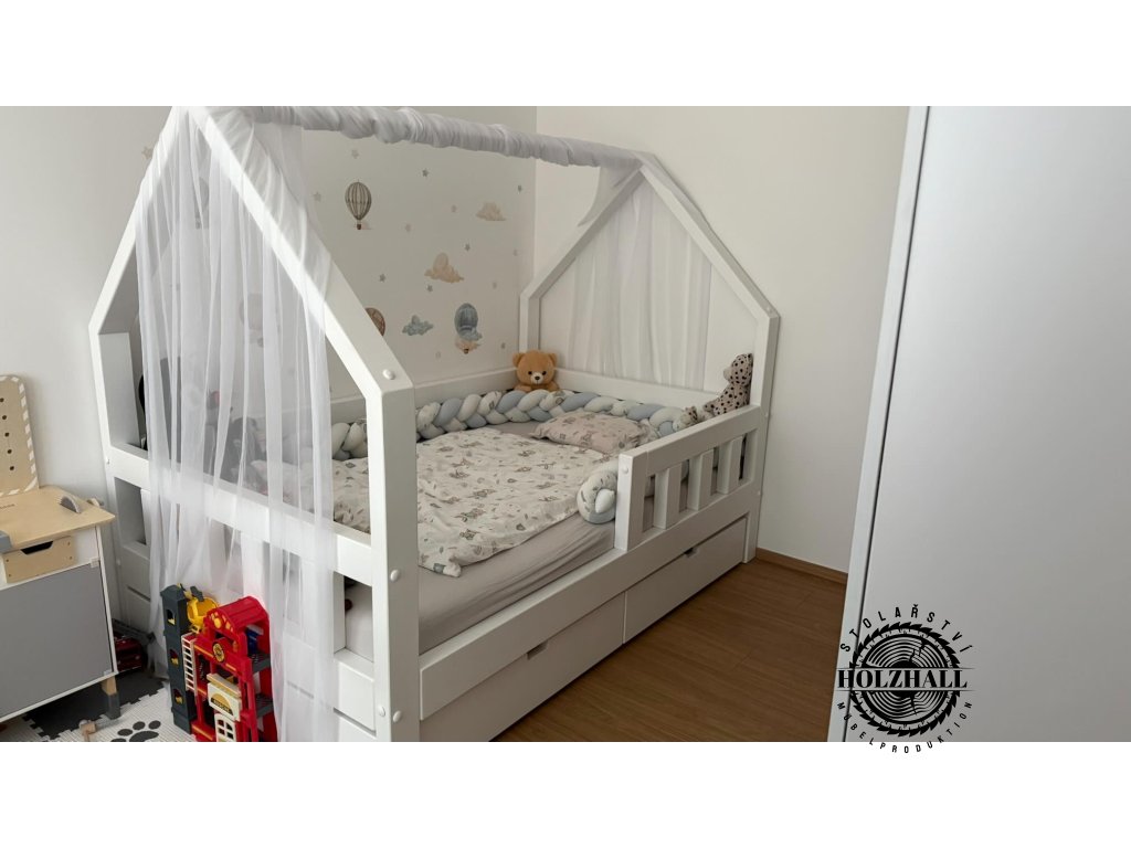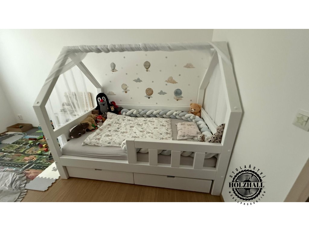 Dětská domečková postel zaujme každého malého dobrodruha. Můžeteji vybavit úložným prostorem nebo přistýlkou a zvolit si lze i umístění zábrany.